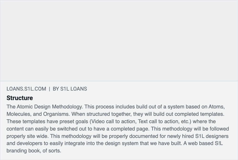 This methodology will be followed properly site wide. This methodology will be properly documented for newly hired S1L designers and developers to easily integrate into the design system that we have built. A web based S!L branding book, of sorts.